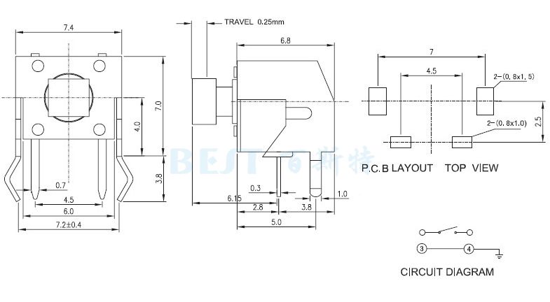 轻触开关TS-1109H参考图纸